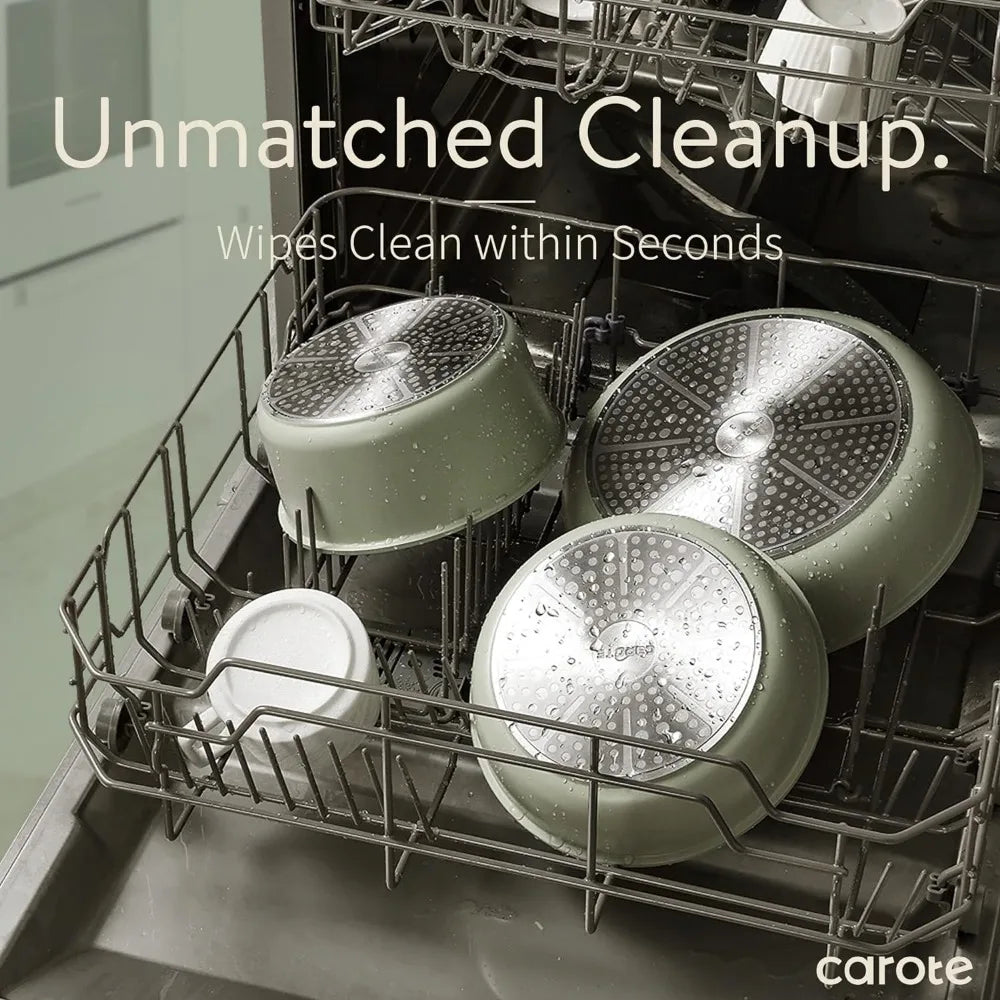 - For a fuss-free cleaning: As both a cookware set and a dinnerware set, 1-time cleaning for all. Cleanup with ZERO elbow grease thanks to the nonstick granite.