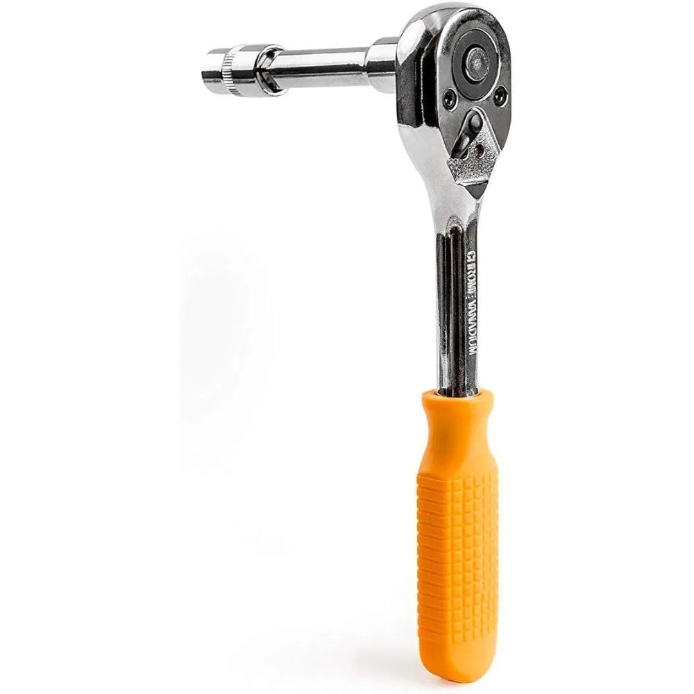 - INCLUDES: Comprehensive assortment of professional-grade wrenches, ratchets, a complete range of SAE and metric-sized sockets and screwdriver bits, hammer, tape measure, pliers,also includes 1/4 inch and 3/8inch socket set, ensure accurate size. And the 72-tooth ratchet easily shift to change direction by flick of 5-degree switch.Variety of 1/4-inch screwdriver bits: Phillips, slotted, square, star and pozi