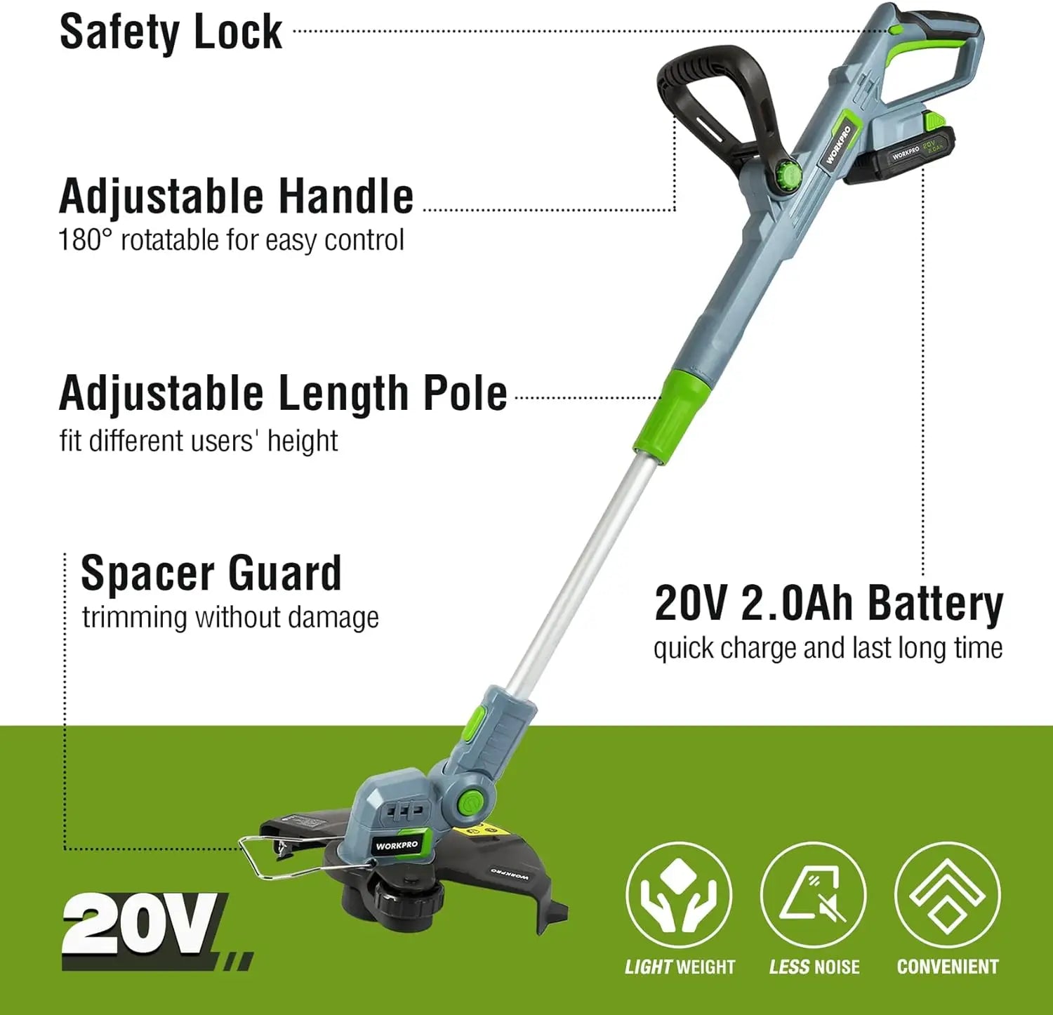 ▶ Lightweight & Maneuverable: The cordless string trimmer/edger is only 3.53lbs/1.6kg without battery, also portable for women to take it anywhere. Lightweight and maneuverable, it gets the job done