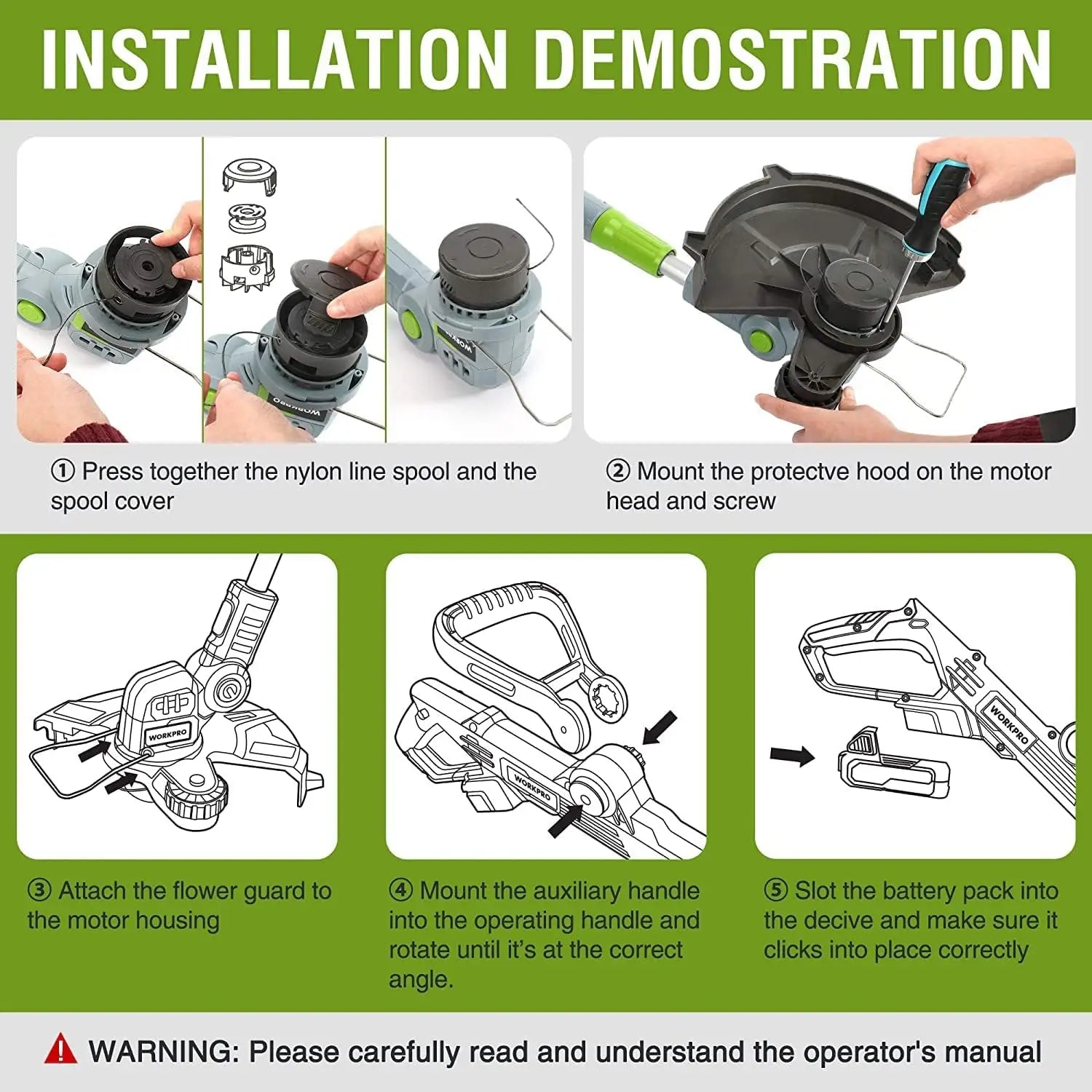 ▶ Powerful Battery Included: The 20V Li-lon battery will provide enough power to finish the work, and when fully charged and it can be quickly charged for about 1 hour. It has decent power for an battery powered weed wacker when doing garden and yard work