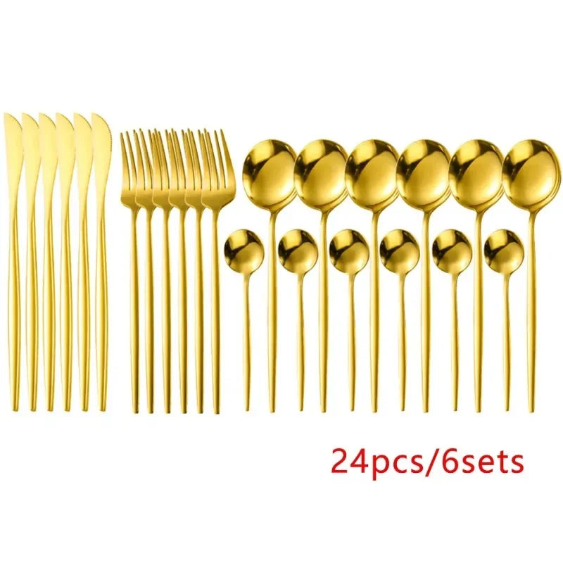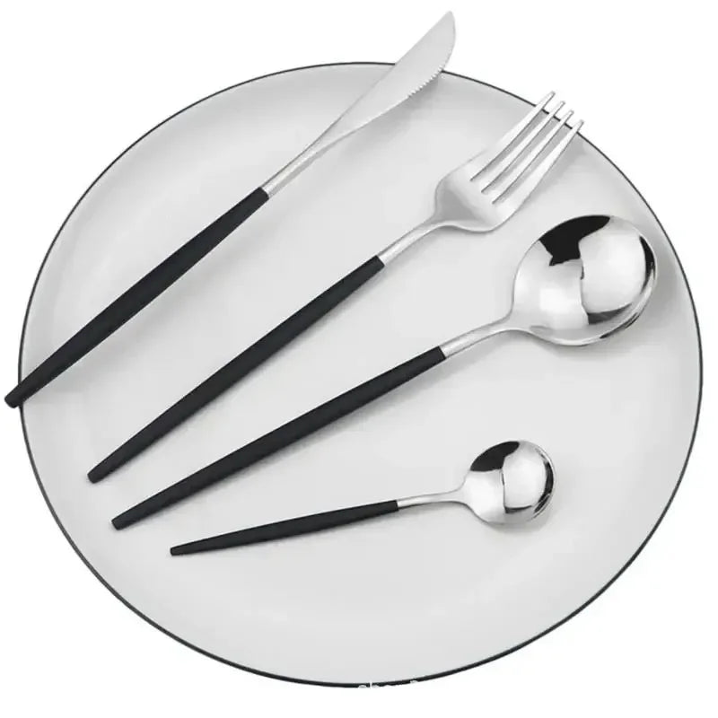 24pcs Black Western Dinnerware Silverware Sets