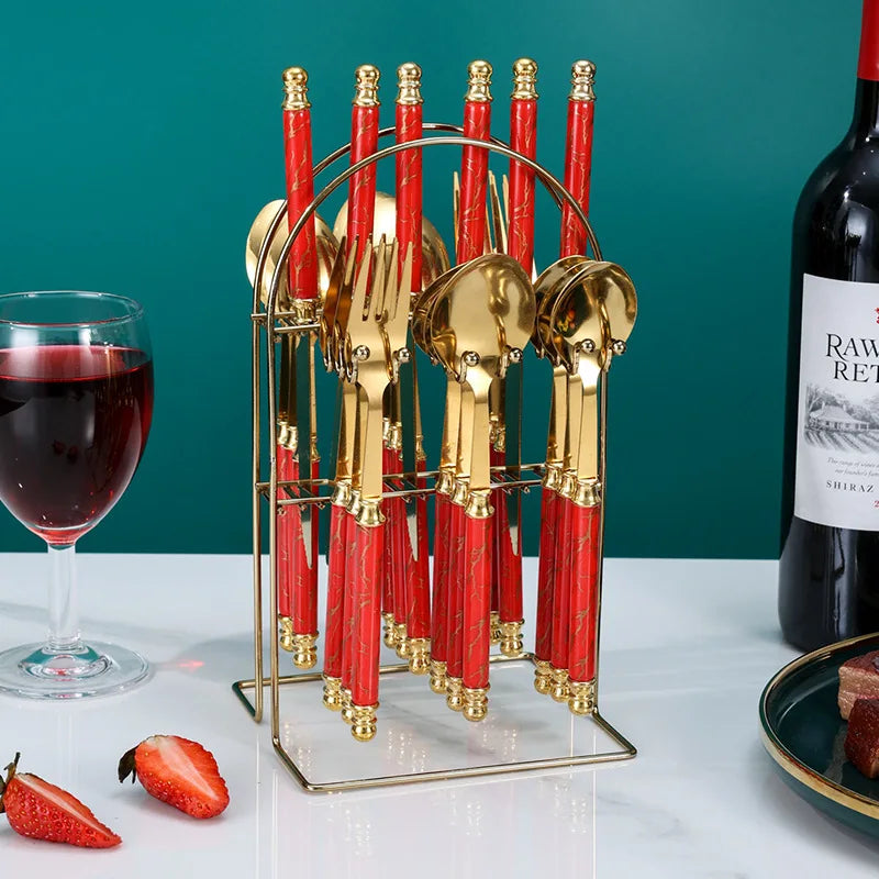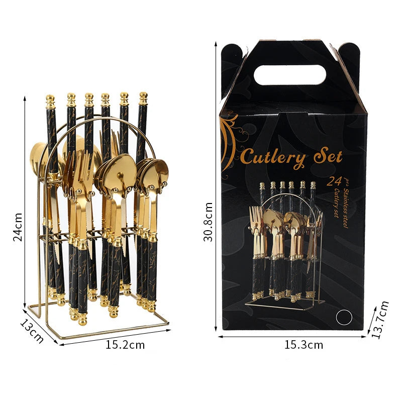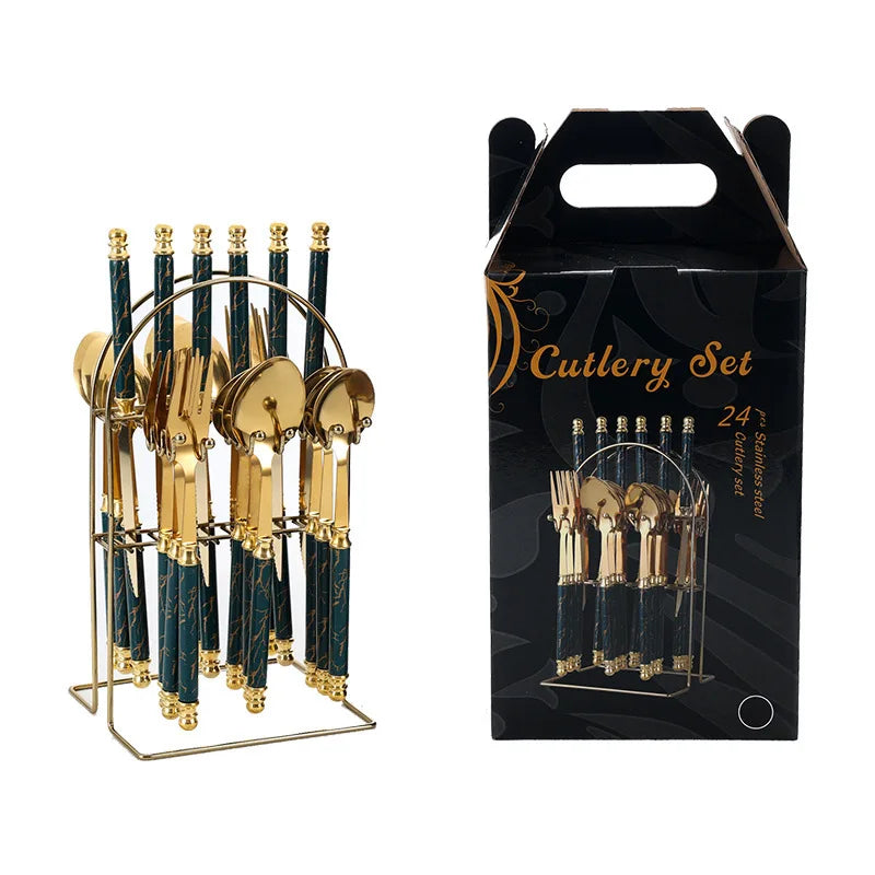 24Pcs Stainless steel tableware double beads set
