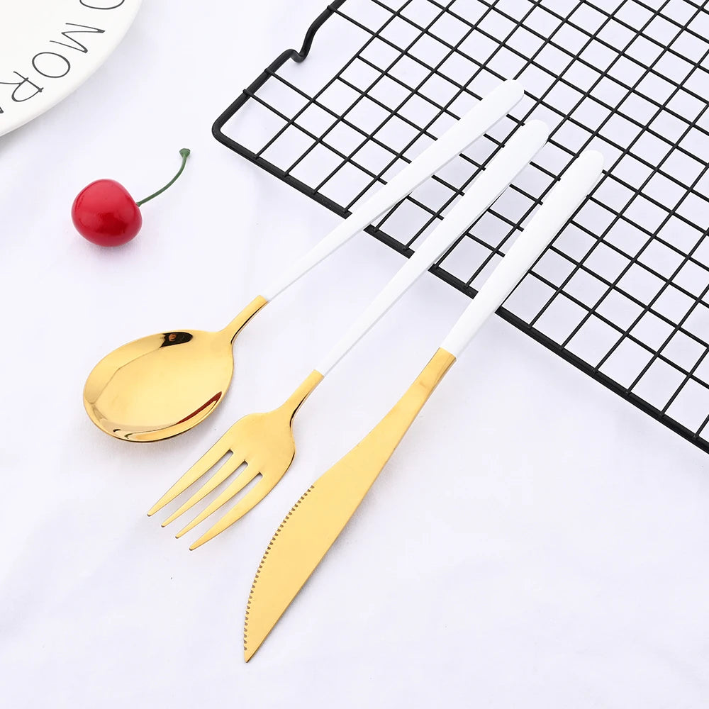24Pcs Mirror Purple Tableware Cutlery Silverware Set