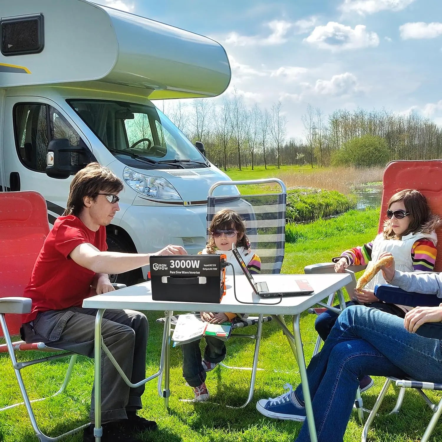 [5-Fold Protection Design] 3000w pure sine wave inverter comes with high/low voltage protection, high temperature protection, short circuit protection, overload protection, and fan cooling system, RONPOW power inverter 3000 watt greatly improve the safety of use