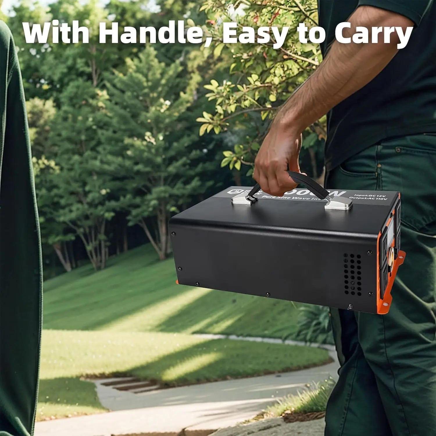 [3000W High Power Output] pure sine wave inverter 3000+ watt converts 12V DC to 110V AC with 3000W continuous and 6000W peak power, ideal for rv, truck, home and outdoor use. 3000w inverter meet the power needs of your various applications