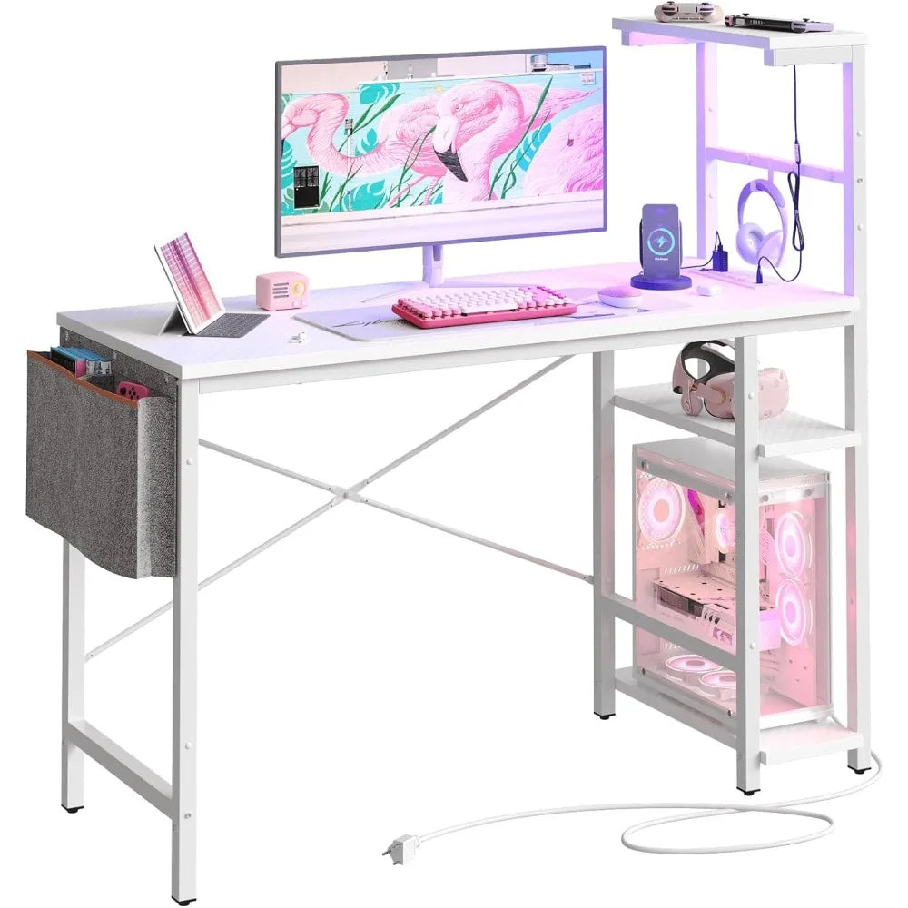 - 【Reversible Shelves & Storage Bag & Headset Hook】: The reversible shelves can be installed on the left or right side to your own personal preferences. The storage shelves provide ample storage space for your unique gaming setup and the side storage bag is perfect for storing cables or other small items, while the hook can hold accessories such as headphones, Keychain, etc