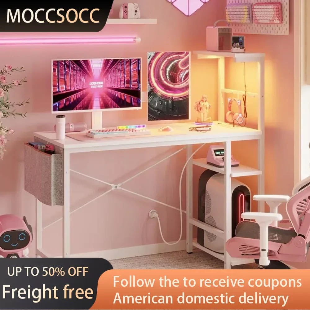- 【Unique & Immersive LED Desk】: The gaming desk with LED lights which have 7 color selections and 22 dynamic modes, which can be easily controlled with buttons on the lights. The LED lights add a dynamic edge to your gaming setup, creating an atmosphere that's both exciting and engaging