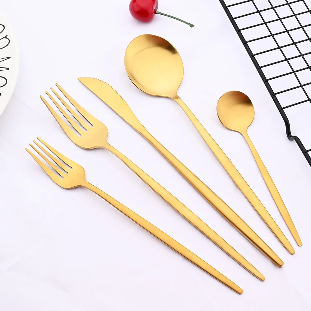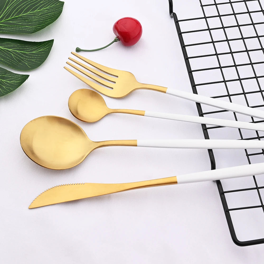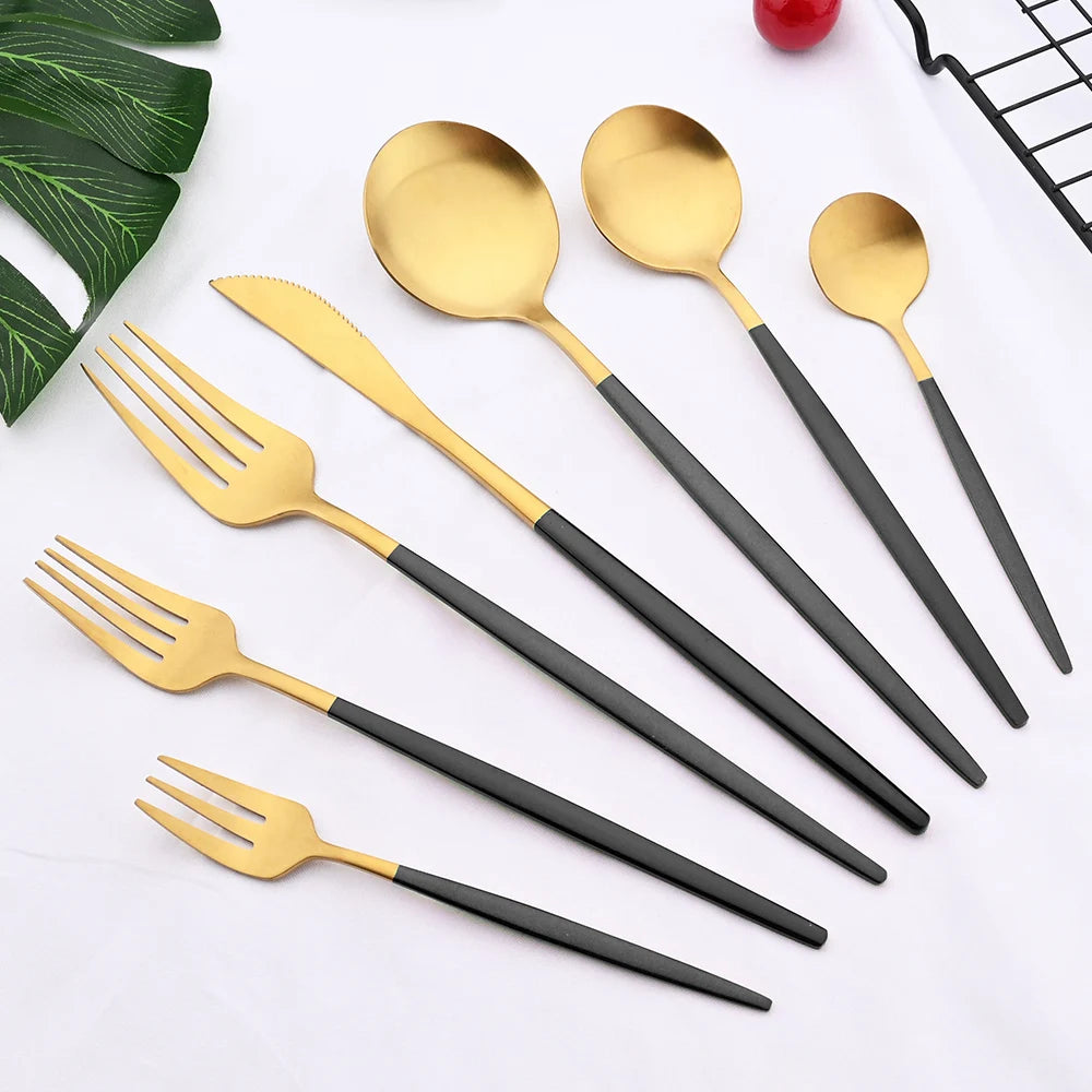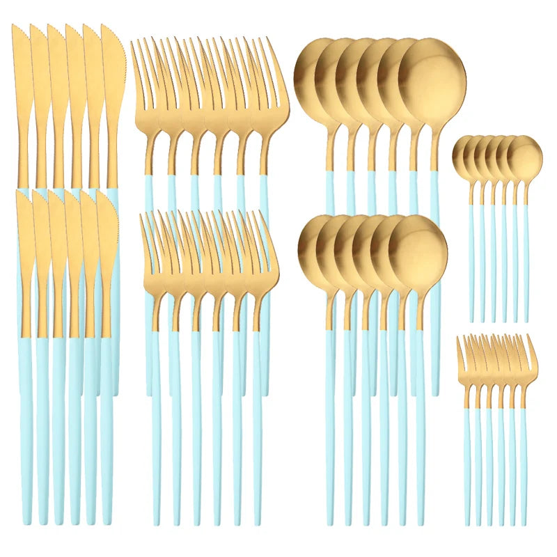 48Pcs Matte Mint Green Gold Tableware Silverware Set