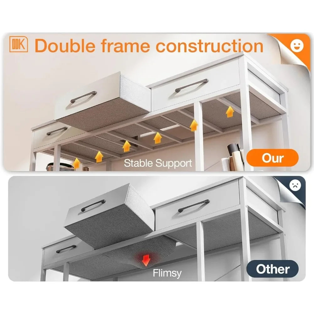 Large Storage Capacity Desk with Drawers】This desk table is designed with 3 easy to assemble fabric drawers that give a nice amount of storage for everything else you need during your work day or study day. The 3 storage drawers can stash things away. Perfect for placing your documents, office or school supplies, gaming equipment etc. You will always have an organized desktop after owing it.