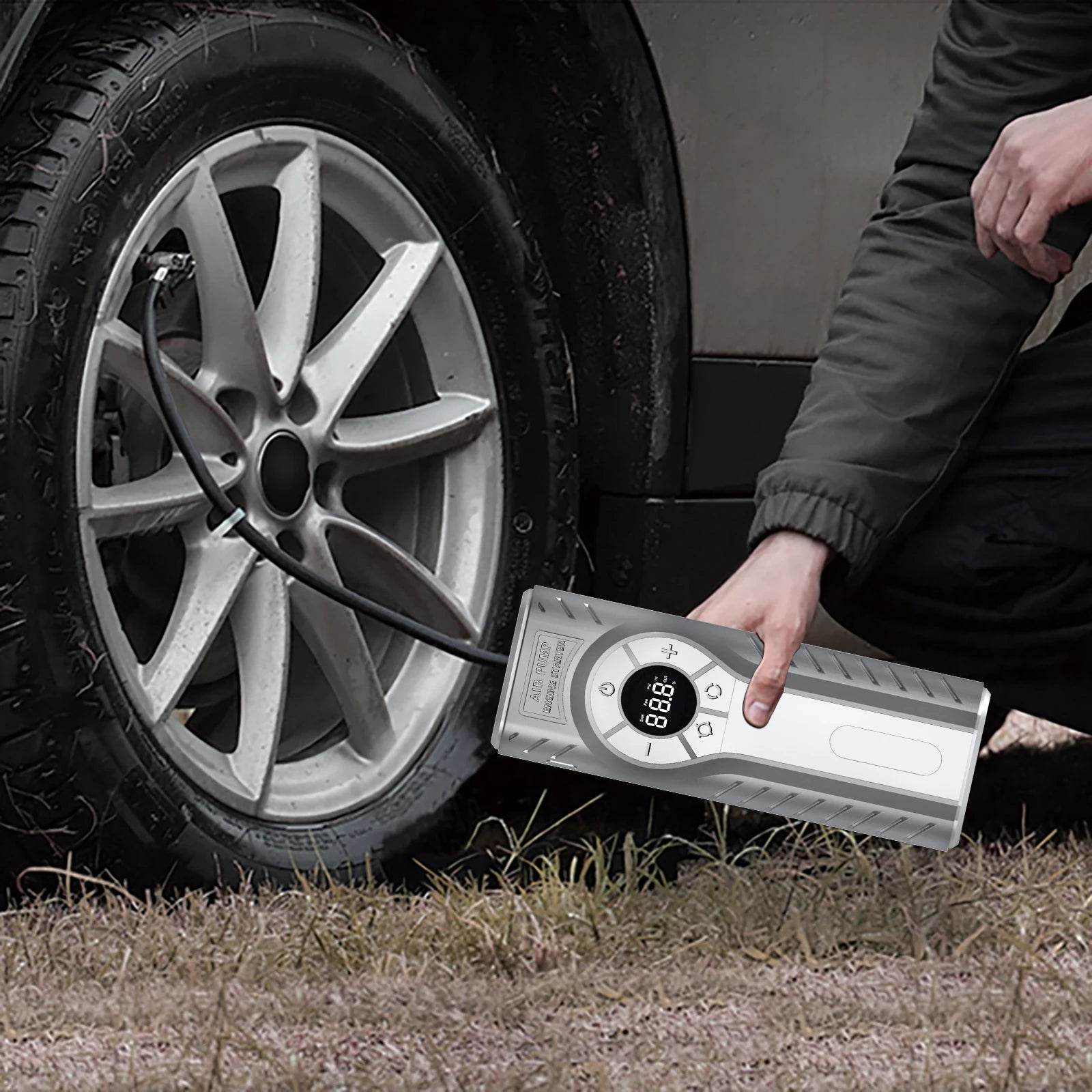4 In 1 Car Jump Starter Power Bank With Air Compressor