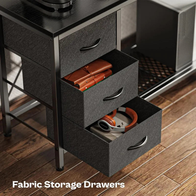 - 【REVERSIBLE L SHAPED DESK】: Install the fabric drawers on the right or left side to fit your layouts. The L desk easily surrounds you with all office items and suits small corners, fully utilizing the corner space. Perfect office desk, gaming pc desk, writing desk or study desk for home space
