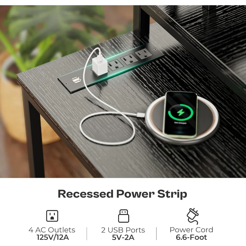- 【POWER OUTLETS & MONITOR STAND】: 4 AC outlets and 2 USB ports are attached to the desktop of the desk with shelves, allowing you to charge your printer, gaming or office devices close at hand. And it also helps to declutter the messy and tangled wires. The monitor stands on the corner computer desk elevate your lines of eye to a higher level to avoid spine, neck pain whenever working or gaming