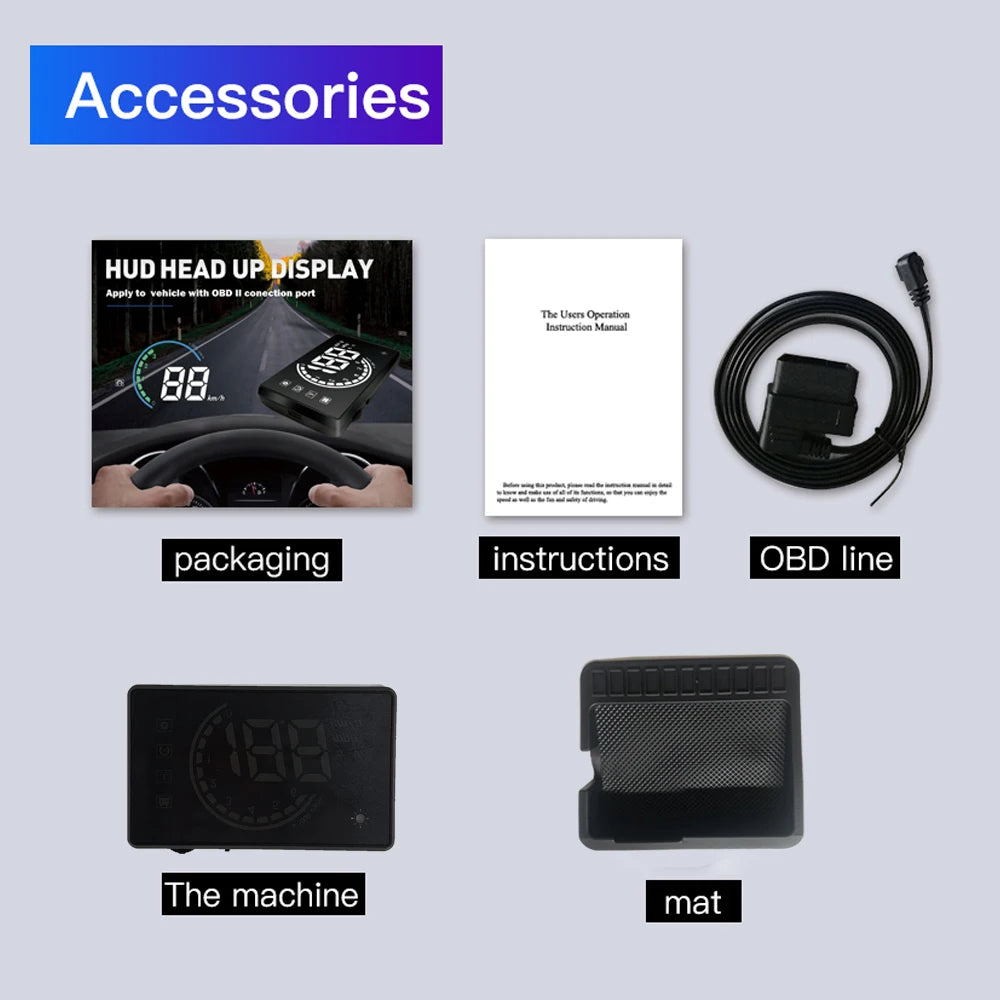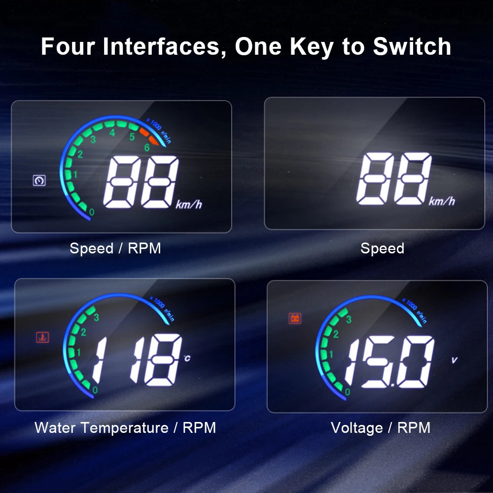 HUD Head Up Display OBD2 Car Gauge Speedometer