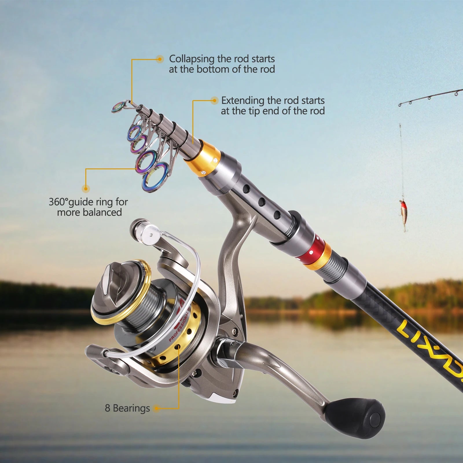 Perfect Fishing Combo Kit: 1 Telescopic Fishing Rod + 1 Spinning Fishing Reel + Fishing Bag Case, get ready for your wonderful fishing journey at any time!