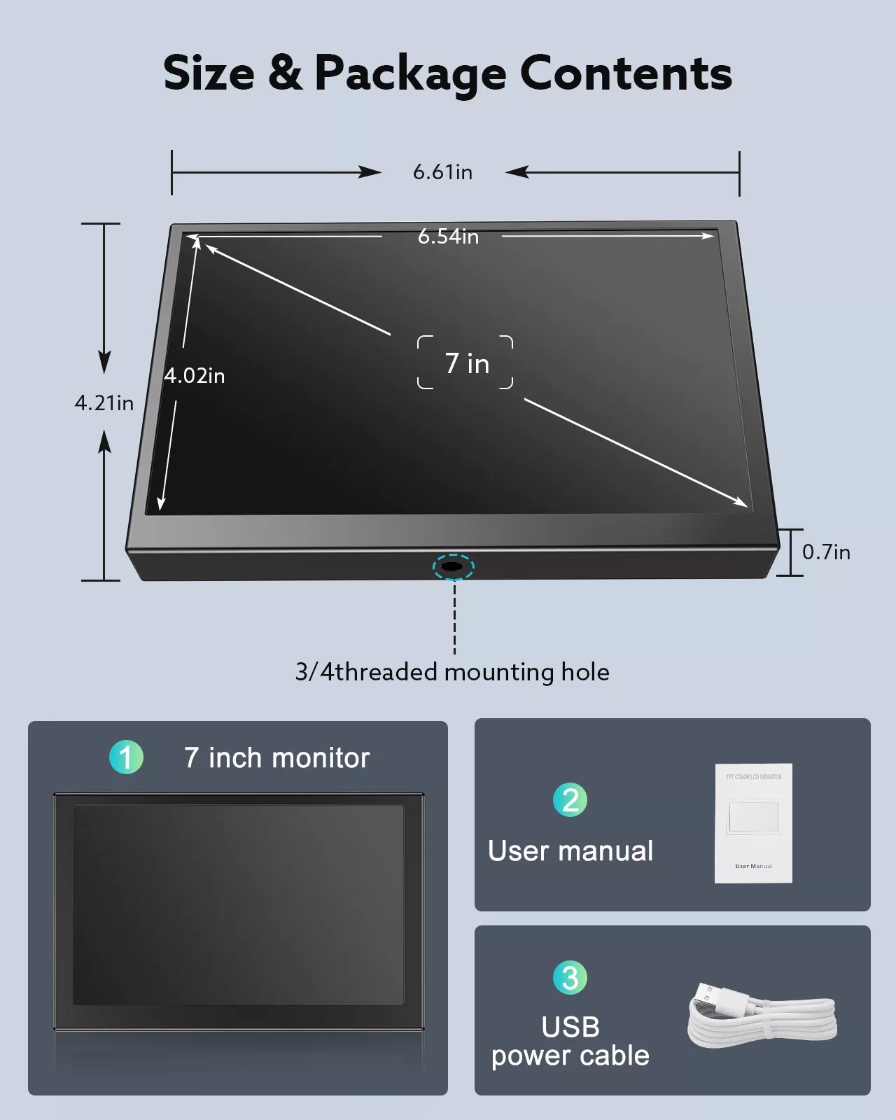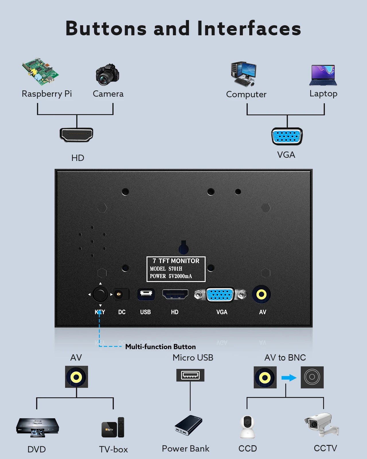 S701H Mini 7 Inch Industrial Screen HD 1024x600 HDMI Monitor