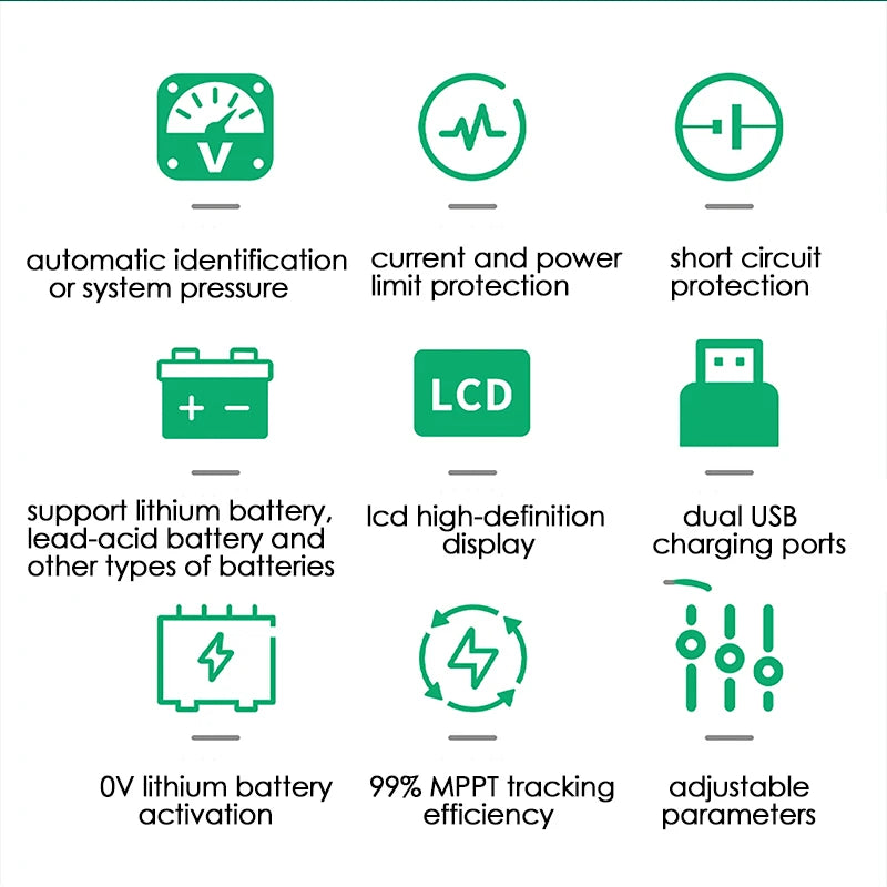 • Max PV System Input Power: 120W (12V), 240W (24V)