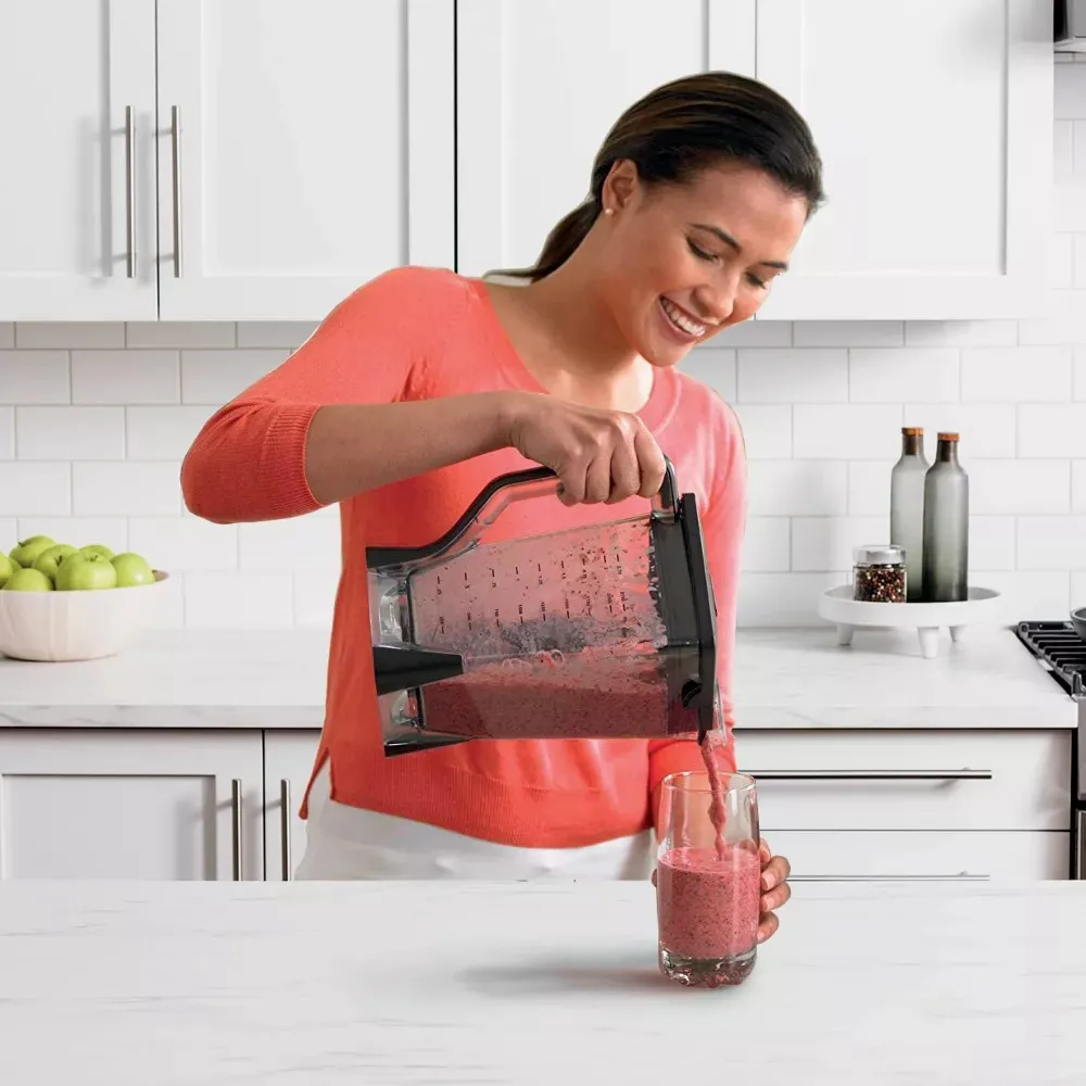 Features: 6-Blade Technology, Pouring Spout, Comfort-Grip Handle, On/Off Switch, Preprogrammed Settings, Locking Lid, Pulse Feature