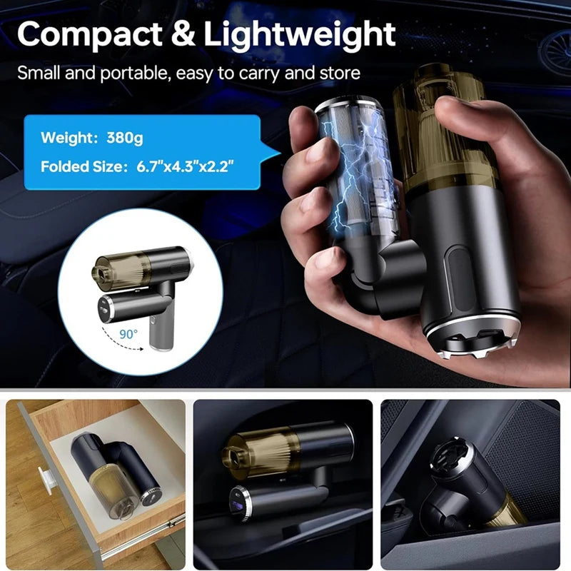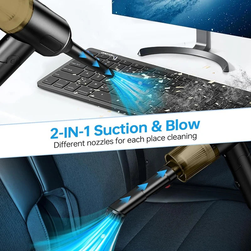 [Versatile 2-in-1 Functionality]This compact vacuum cleaner supports both suction and blower functions with its multifunctional design. Equipped with essential accessories, it efficiently tackles hard-to-reach spots like keyboards and car interiors while managing surface stains on sofas and seats.
