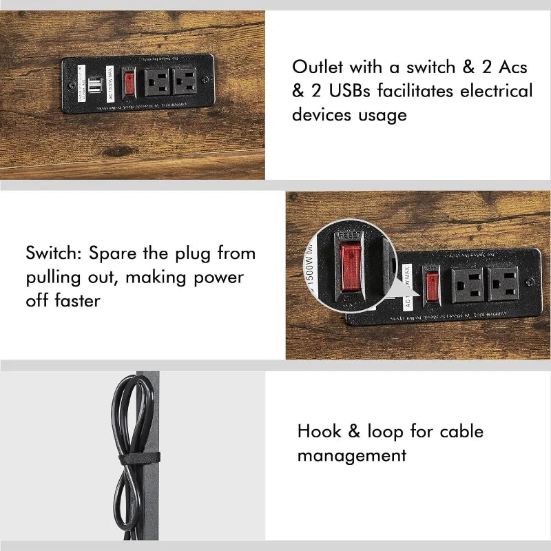 - Built-in Power Outlet】To ensure maximum efficiency this desk is fitted with a built-in power outlet, you'll have ample space to charge all your items with ease. The 2m long, 1500W power outlet with 2 ACs & 2 USB ports, a switch, and a hook & loop, adopts a three-plug and a double-insulated round wire, convenient and safe!
